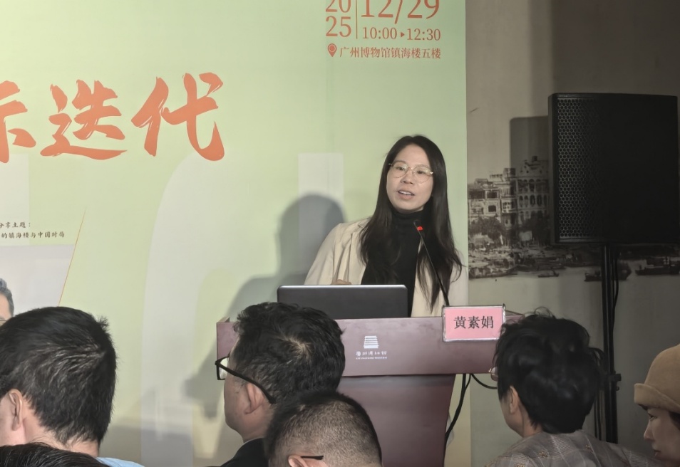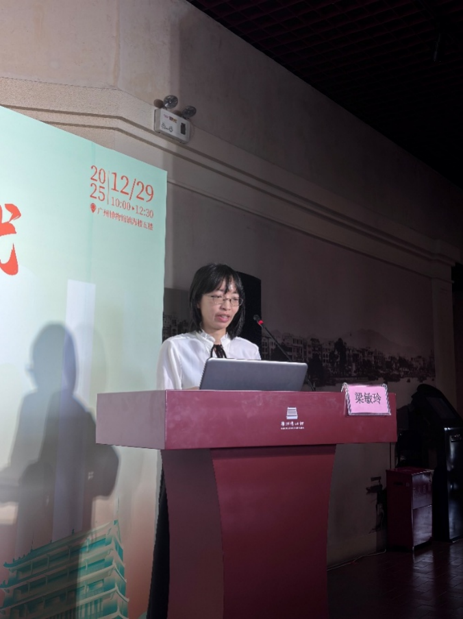 紧接着,暨南大学梁敏玲副教授将视野聚焦于清代。她以本次沙龙所在地——镇海楼为核心研究对象,通过系统爬梳方志、日记、游记等各类历史文献,并考察外销工艺品中的视觉呈现,梳理了清代文人笔下多元的镇海楼叙述及其在物质文化中的意象流转。她的分析揭示了镇海楼作为城市新地标的塑造过程。这一过程并非孤立的文化建构,而是与城市日常生活、社会交往及对外商贸活动存在深度的绑定与互动。