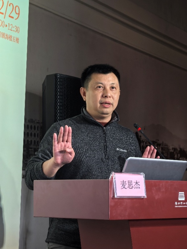 在沙龙的主题发言环节,五位专家分别就不同时期的广州地标展开了精彩而深入的分析。其中,暨南大学麦思杰教授以《再造景观——明代广州城地标的塑造》为题进行阐述。他将明代广州地标景观的塑造置于长时段的历史框架下加以理解,指出地标是地理空间与人文活动结合的产物。他以明代琶洲塔的营建为例,强调这一工程不仅是地理标志,更是广东地方士绅培育人文风气、助推科举事业的重要举措,折射出明代本土士绅在文化叙事上话语权的提升。