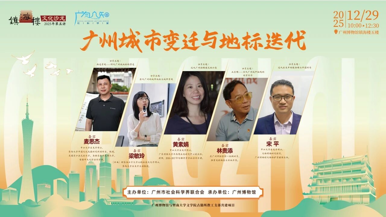 2025年12月29日,暨南大学历史-古籍联合党总支与广州博物馆在镇海楼共同举办“镇海楼文化沙龙”。本次活动以“广州城市变迁与地标迭代”为主题,邀请了多位广州历史研究学者,从不同视角探讨广州历代地标与城市格局发展之间的互动关系,深入挖掘镇海楼作为传统城市地标的历史意义和当代价值。