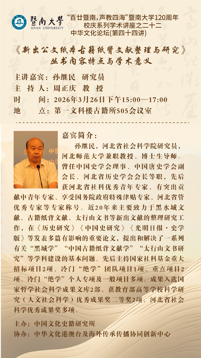 中华文化论坛(第四十四讲):《新出公文纸本古籍纸背文献整理与研究》丛书内容特点与学术意义