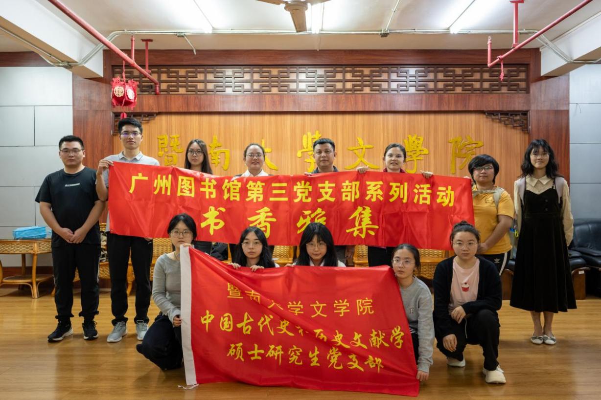 围绕筑牢文化自信根基、赓续岭南文脉薪火这一主题,暨南大学文学院古籍所教工党支部联合中国古代史与历史文献学硕士研究生党支部,于2025年10月28日共同举办了一场兼具学术深度与文化温度的主题党日活动。本次活动以学术讲座的形式开展,既是“粤文化”党建品牌的系列内容之一,也是古籍所教工党支部与广州图书馆第三党支部共建成果的具体体现。
